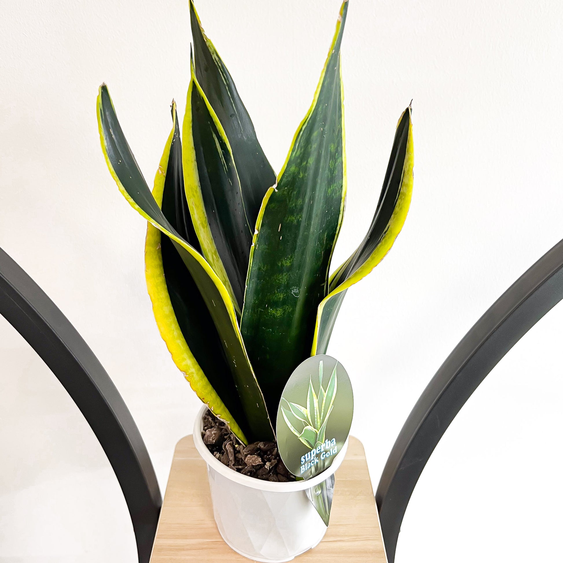 Look no further than the Sansevieria Black Gold to bring an extra spark of life to your home or office. This stunning snake plant cultivar is a popular variety that will have everyone in awe with its sleek dark green leaves and eye-catching golden-yellow edges. Truly, it's the perfect statement piece for any living space!
